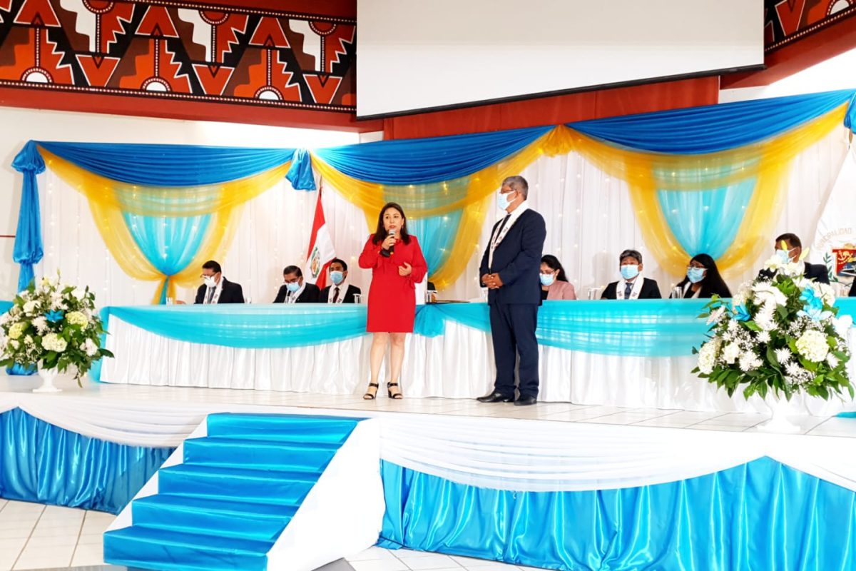 En sesión solemne, con motivo del 52 aniversario de la provincia de Ilo, el alcalde Arql. Gerardo Carpio Díaz, entregó resolución de reconocimiento a la Directora Ejecutiva del Fondo de Desarrollo de Moquegua (FDM), en mérito a su contribución a la lucha contra la Covid-19 y el aporte al desarrollo de Ilo con la ejecución de obras que vienen generando mano de obra local y oportunidad a proveedores de la zona.