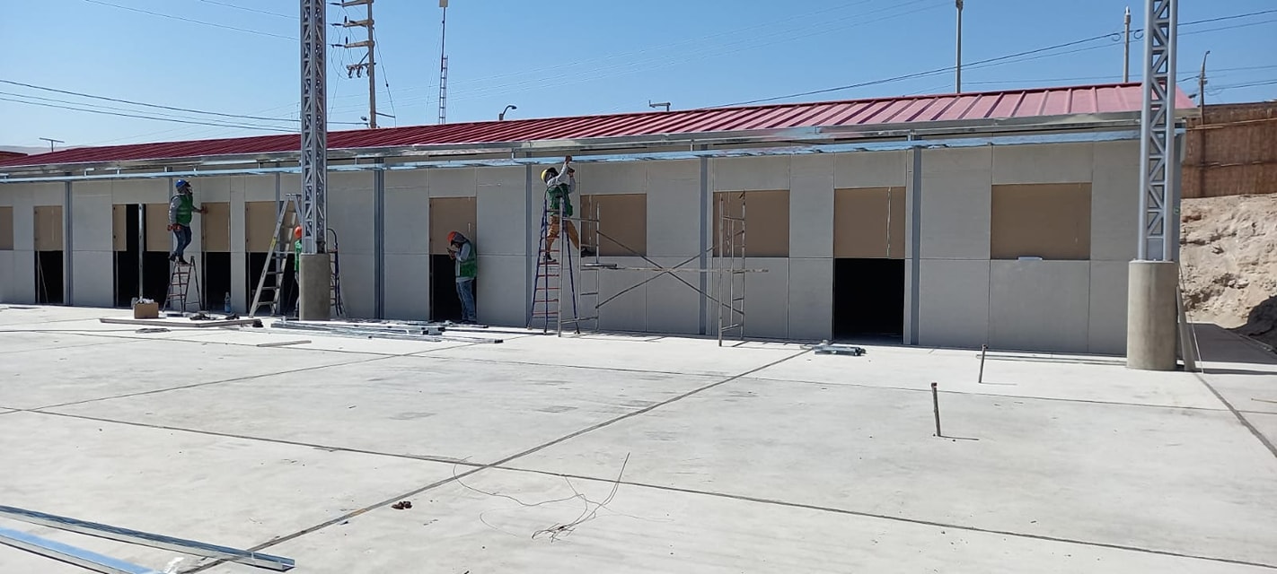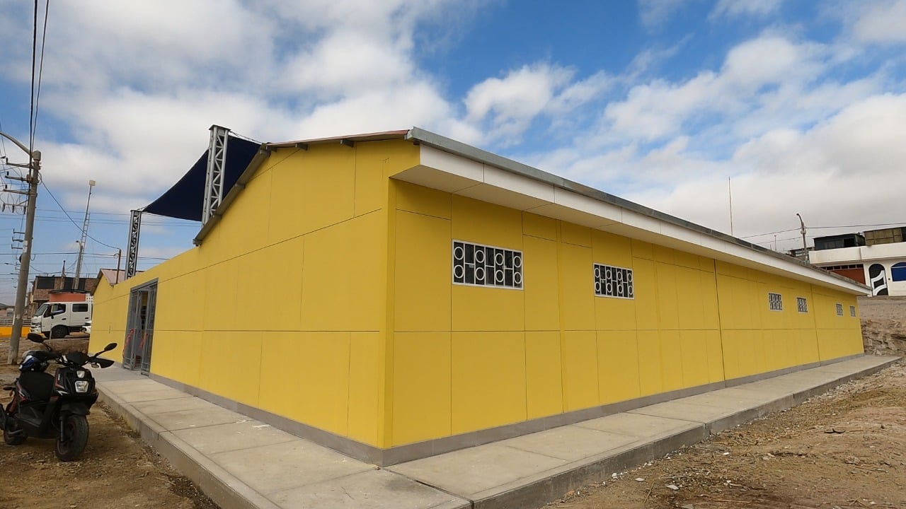 La infraestructura de contingencia fue construida mediante un sistema modular de drywall, e incluyó aulas provisionales, ambientes de psicomotricidad, área administrativa, servicios higiénicos, patio de honor, tanques cisterna e instalaciones complementarias, cumpliendo criterios básicos de funcionalidad, seguridad y salubridad para el uso educativo temporal.