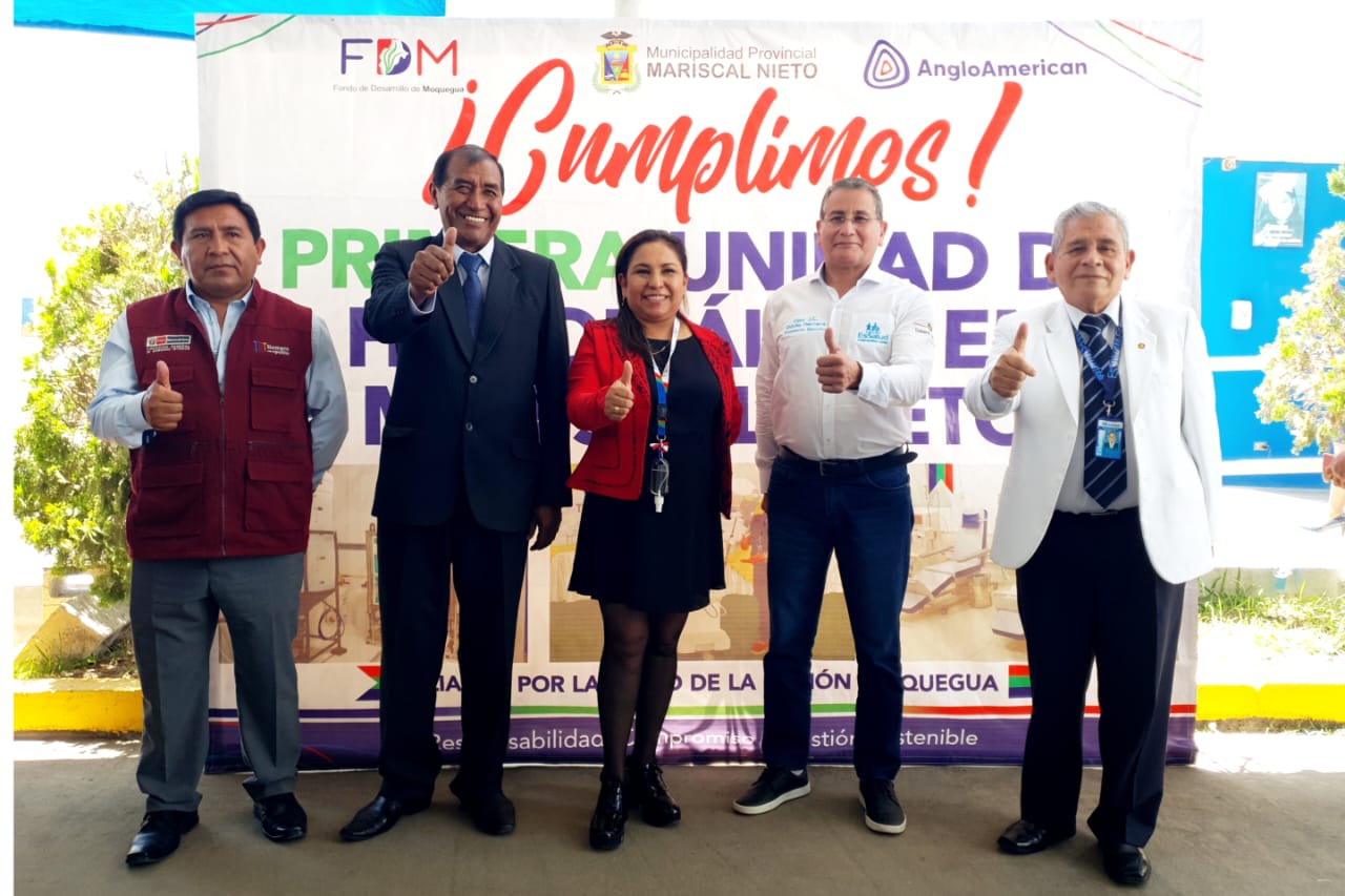 Con una inversión de S/ 1 496 621,30, financiada con recursos provenientes del adelanto de los S/ 100 millones como aporte por responsabilidad social de la empresa Anglo American Quellaveco, y tras la priorización del Consejo Directivo del Fondo de Desarrollo de Moquegua (FDM), se concretó la implementación de la Primera Unidad de Hemodiálisis en la región Moquegua, fortaleciendo de manera decisiva la capacidad del sistema de salud regional.